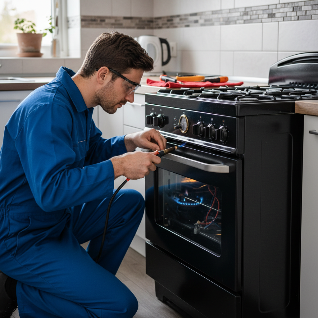 Майстер проводить повну перевірку газової плити та визначає причину поломки.